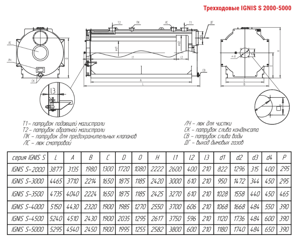 Технические характеристики водогрейного трёхходового котла ARCUS IGNIS S-3000