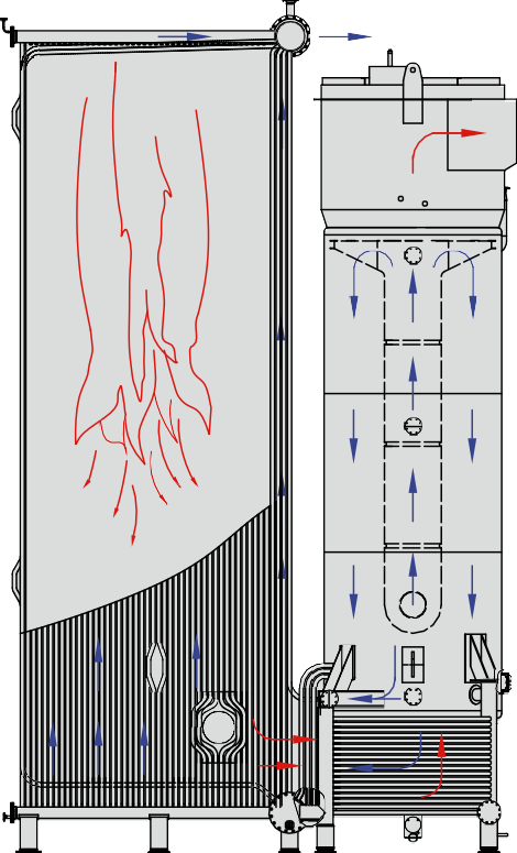 Используются для отопления зданий и производства горячей воды. Работают на газообразном и дизельном топливе. Конструктивно решен в газоплотном исполнении и работают под наддувом.