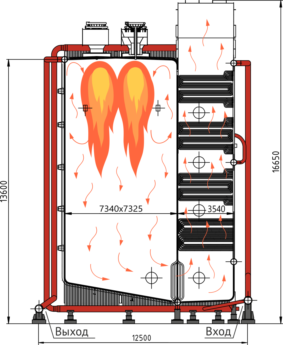 TEMRON Wmax-180 - водотрубные газовые котлы высокой мощности, оборудованные горелками,расположенными на потолке. Имеют высокие экономические и экологические характеристики.